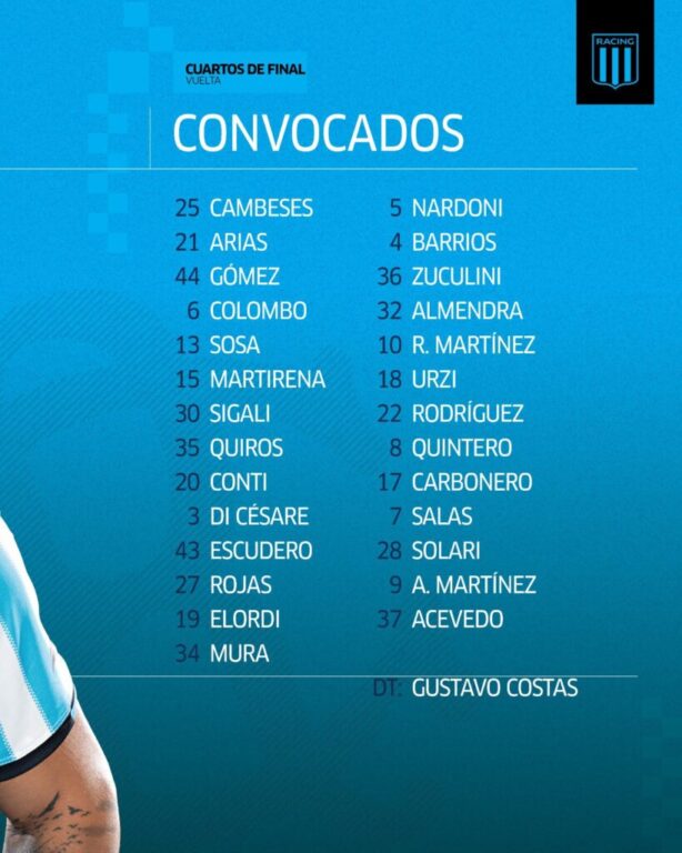 Este jueves 26 de septiembre a las 21:30, Racing recibirá a Athletico Paranaense en el Estadio Presidente Perón, en lo que será el partido más importante del año para el conjunto que dirige Gustavo Costas. La Academia va en busca del pase a la semifinal del torneo continental.