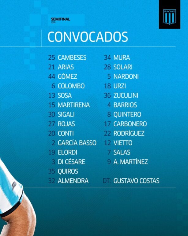 Estos son los convocados por Gustavo Costas para el encuentro por Copa Sudamericana. Marco Di Césare y Santiago Quirós integran la lista.